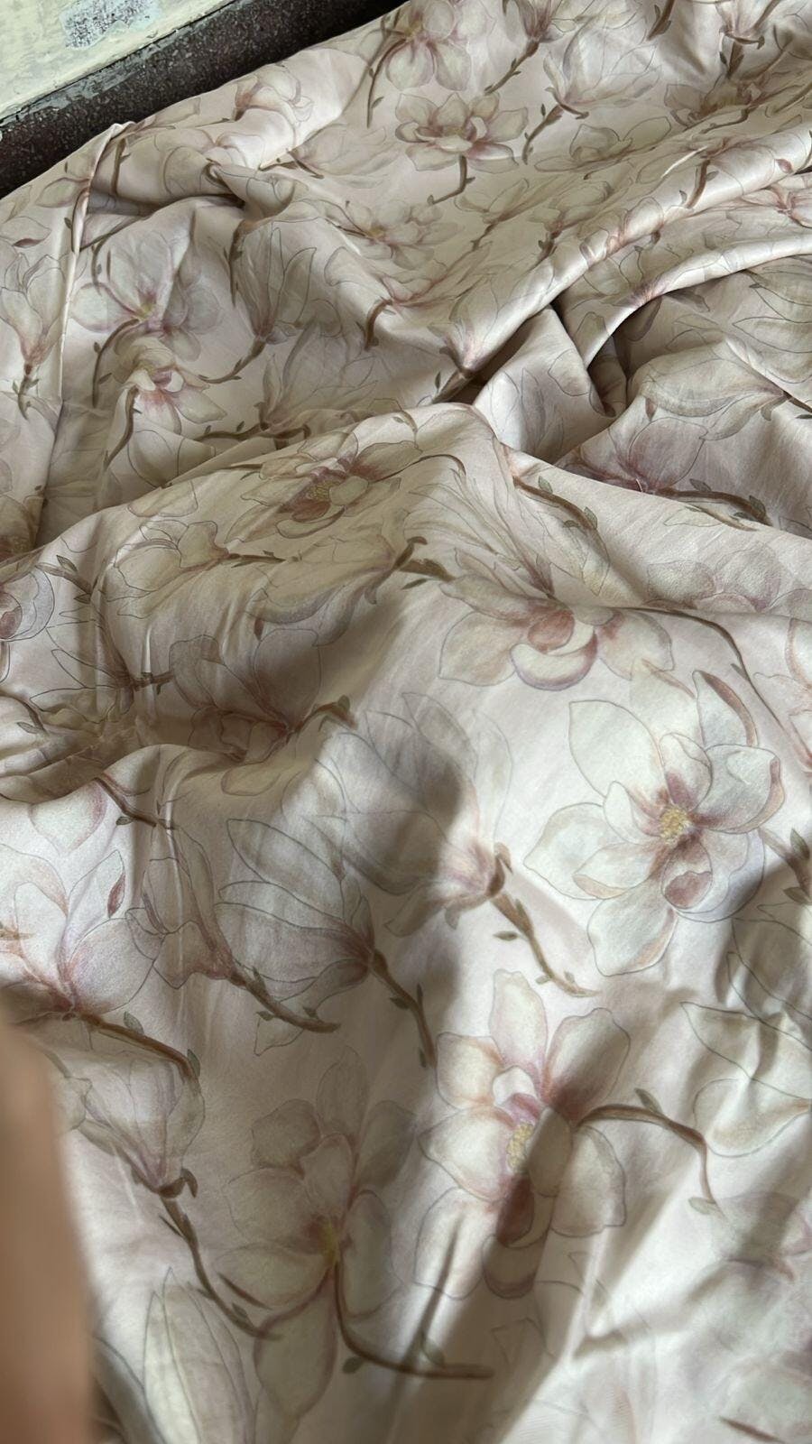 A cotton duvet cover set with delicate magnolia blooms in soft blush tones. Digitally printed and whisper-light—designed to soothe the senses.